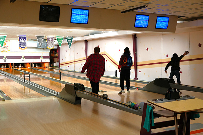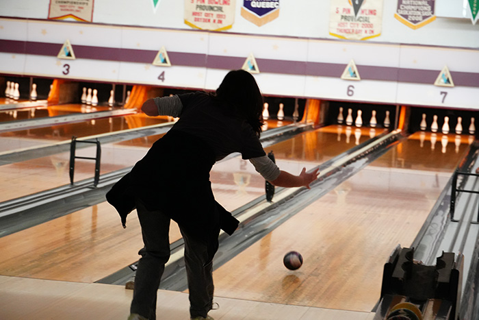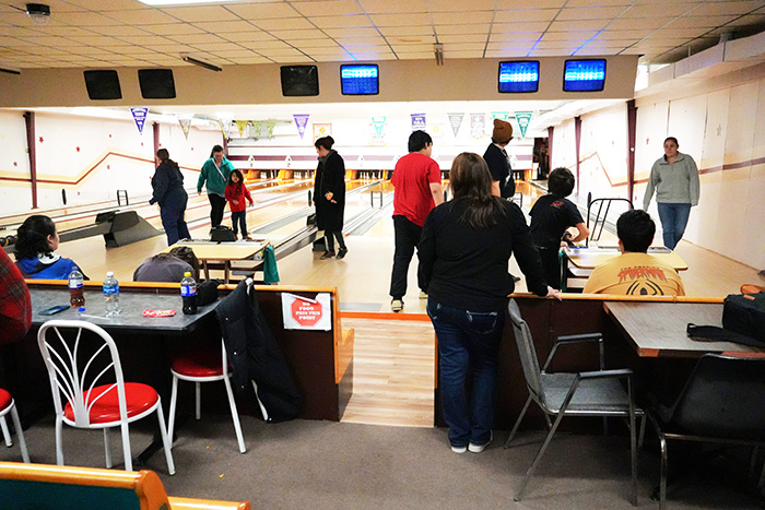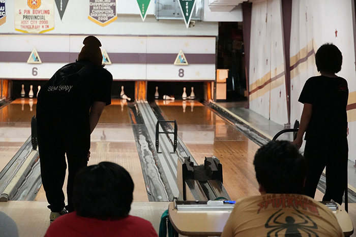 On Friday, November 28, the Sunshine Room visited Espanola! The classroom crew, their teachers, education assistants (EAs), and parent volunteers, travelled to Venture Lanes 5-Pin Bowling Alley on Mead Boulevard. Catherine Drouin and her husband Don have owned and operated Venture Lanes since 2015, but she remarked that the lanes have been in Espanola since the early 60s. The bowling alley underwent some recent renovations and updates, including replacing the manual score system with newly automated scorekeepers and bowling pin reset. Catherine said it sure beats her having to run down the lane to fix pins that land oddly, block the ball return, or worse, delay the play! The scorekeeping system keeps track of points automatically for players, indicates the next player by flashing their name on the board, keeps players honest, and is very user-friendly! These features helped the Sunshine Class know who was on deck next, helped them learn about bowling etiquette, and tallied the scores for them, all to keep things ‘bowling’ along!