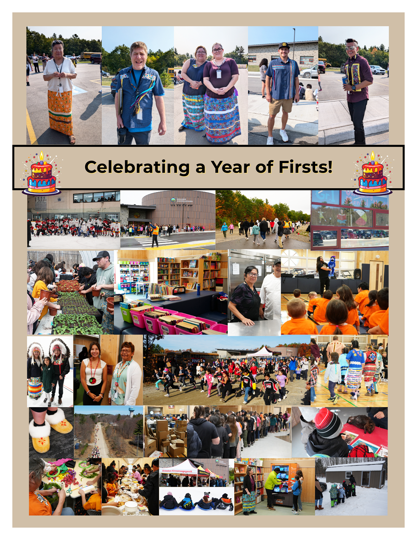 Celebrating a year of Firsts for Biidaaban Kinoomaagegamik. Take a look at some of the photos from the Grand Opening in September 2024, some photos of firsts over the past year, and a Miigwech message to all involved in supporting Sagamok Education.