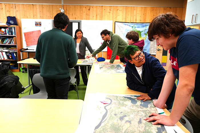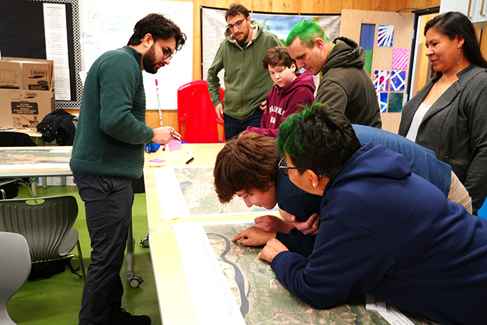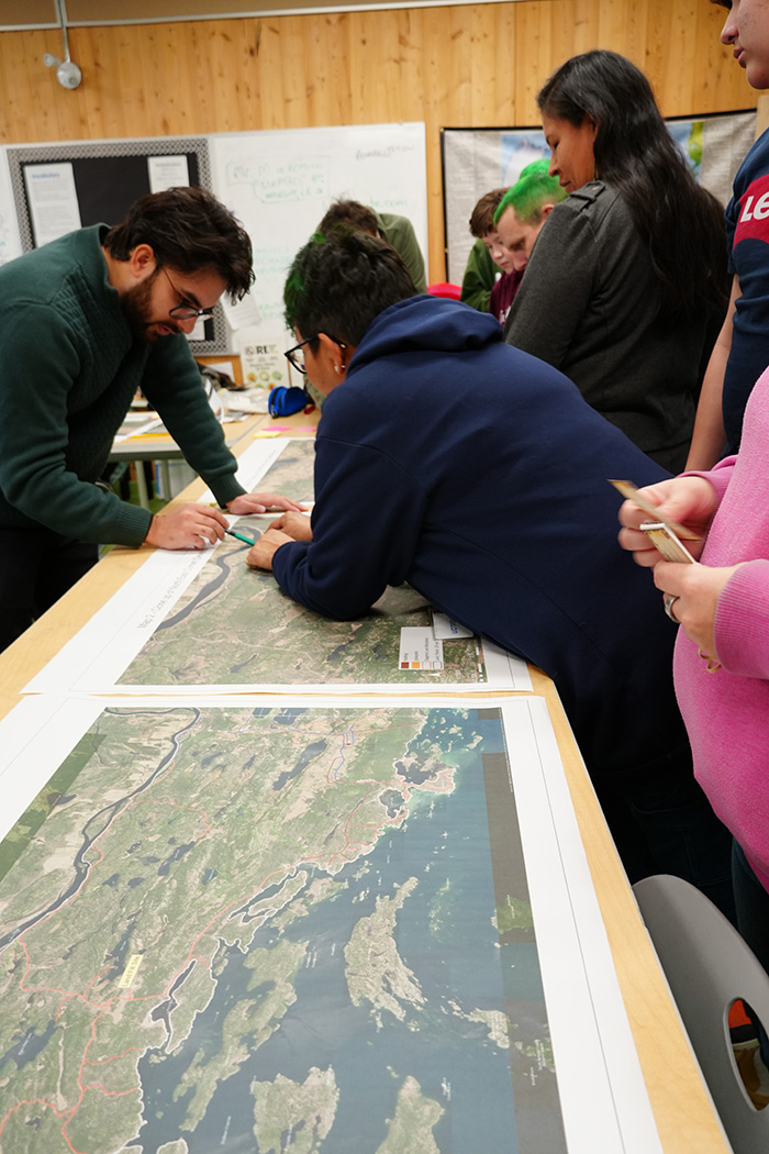 With fresh, large-scale maps of Sagamok’s territory printed by Mitchell and laid out for all to see, Samantha and Allen assisted with gathering feedback and encouraging students to discuss and consider their priorities and visions for the future of Sagamok. The Consultants and LRE Staff, supported by Mr. Maracle, Ms. Jeanette (Educational Assistant), and Mr. Lester (Physical Education Teacher), conducted an informal discussion with all the students. It was crucial to have the voice of Sagamok’s youth heard and applied to the Land Use Plan, since they are the future citizens and stewards of the land, and offered valuable insights as only someone in their age demographic could. Miigwech to the students for taking a serious approach and interest in the future of Sagamok.