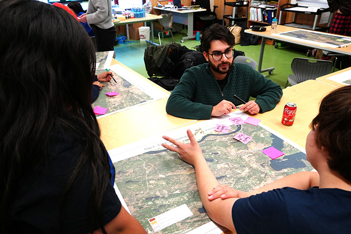 Mr. Maracle’s Grade 8 class was invited to provide a youth voice and perspective for Sagamok’s Land Use Planning. On December 3, Mis sBritt and Mr. Chirag, consultants from Shared Value Solutions – the group supporting Sagamok with developing its Land Use Plan – visited the Biidaaban classroom as part of their two-day community engagement. They were joined by several members of the Lands, Resources, and Environment (LRE) team – Samantha Keysis, Allen Toulouse, and Mitchell Eshkakogan. Students provided unique and thoughtful points to the discussion!
