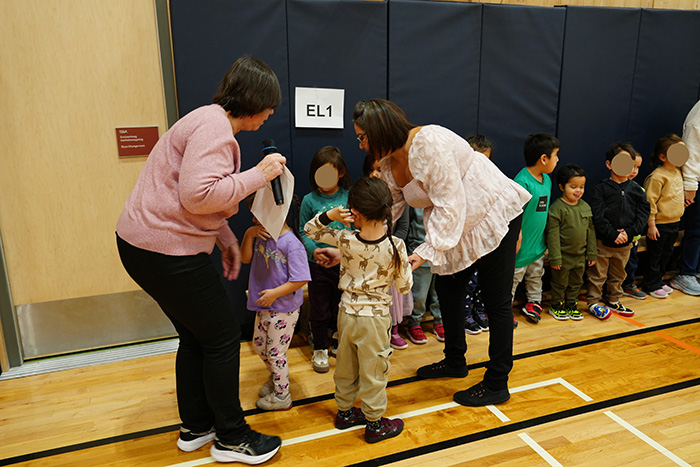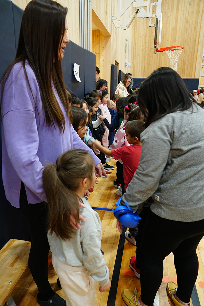 All staff and students gathered in the gymnasium by grade, arranging themselves around the gym in succession. Ms. Becky announced the reason for the gathering, providing some cultural history and meaning to gatherers, as well as started the receiving line, directing Early Learners on how to begin navigating the ring of students, greeting everyone as they went along. Once all staff and students had gone through the procession, they each received a bag of goodies before heading back to class to enjoy them.