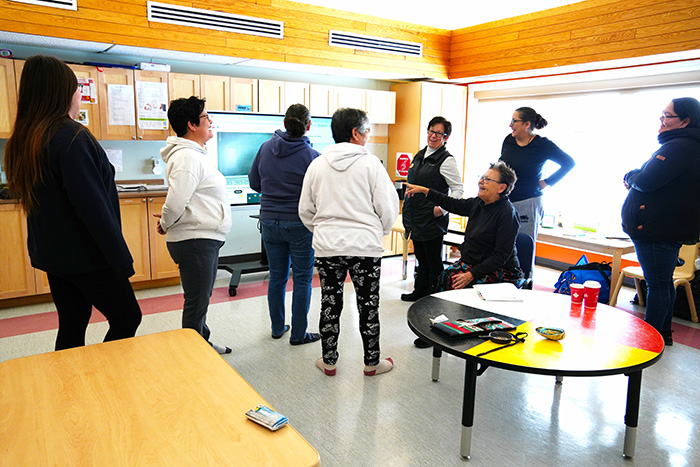 Shki Waase-Aaban Binoojiinh Gamik welcomed Barbara Nolan, Anishinabek Nation Anishinaabemowin Commissioner, and Lynne Pine, Barbara’s apprentice, on January 30, to the Daycare’s Professional Development Day. Daycare Manager, Rachel Toulouse, and Marjorie Southwind, Anishinaabemowin Manager, invited Barbara and Lynne to coach Education staff on how to incorporate Anishinaabemowin into the Daycare's daily operations.